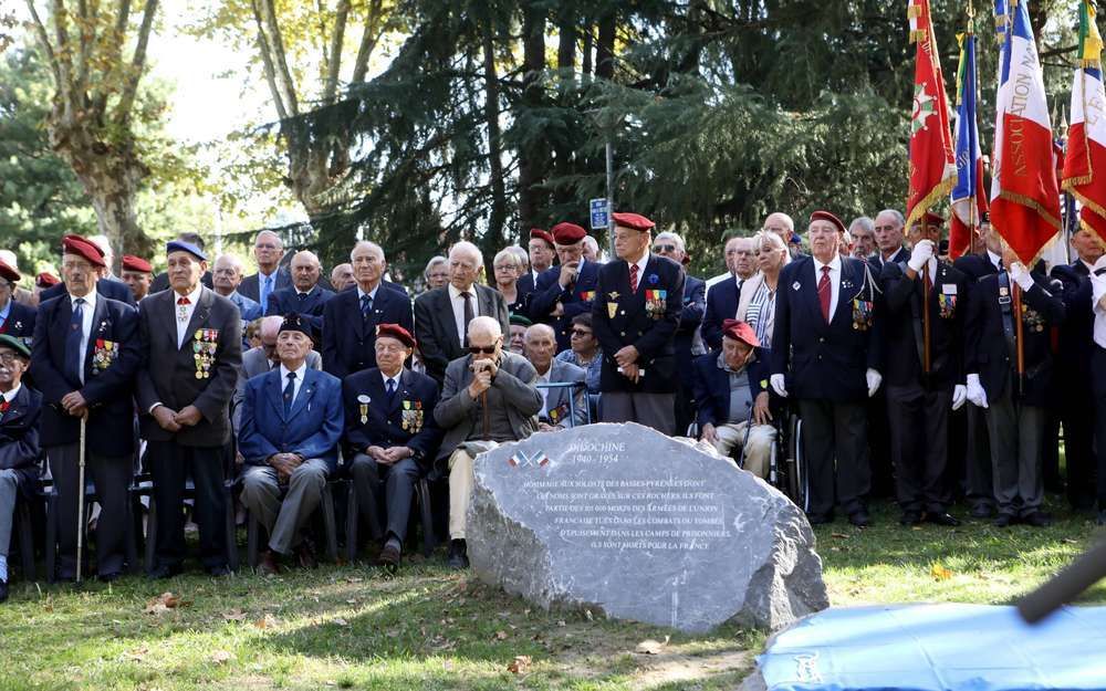 Ce sont quatre vingt cinq de drapeaux qui se sont trouvés devant le Mémorial - dont l'origine avait été demandé par l'Association Nouvelle des Anciens et Amis de l'Indochine, présidée par M. Paul Burgau - demande validée par la ville de Pau.