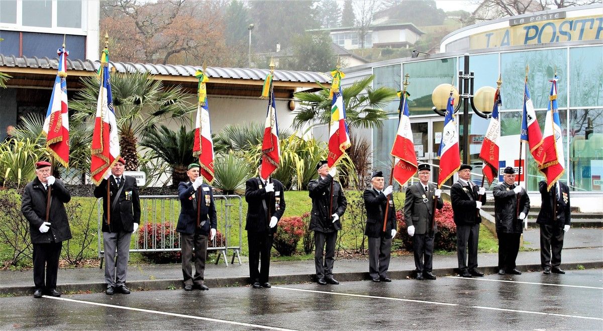 La présence de 10 porte-drapeaux : Légion d'Honneur - Médaille Militaire - Gendarmerie - Sapeurs Pompiers - Anciens Combattants - Amicale des Pieds-Noirs... assistés de leurs Présidents et membres, magnifiait cette prise d'armes de haute tenue qui se clôturait par un apéritif d'honneur salle Bichendaritz.